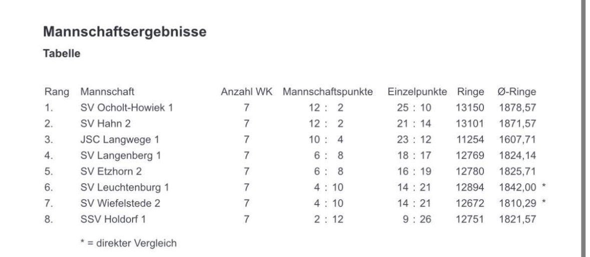 Glückwunsch an den SV Ochholz Howiek 1 zur erneuten Meisterschaft in der Bezirksoberliga Luftgewehr des Oldenburger Schützenbundes e.V.!