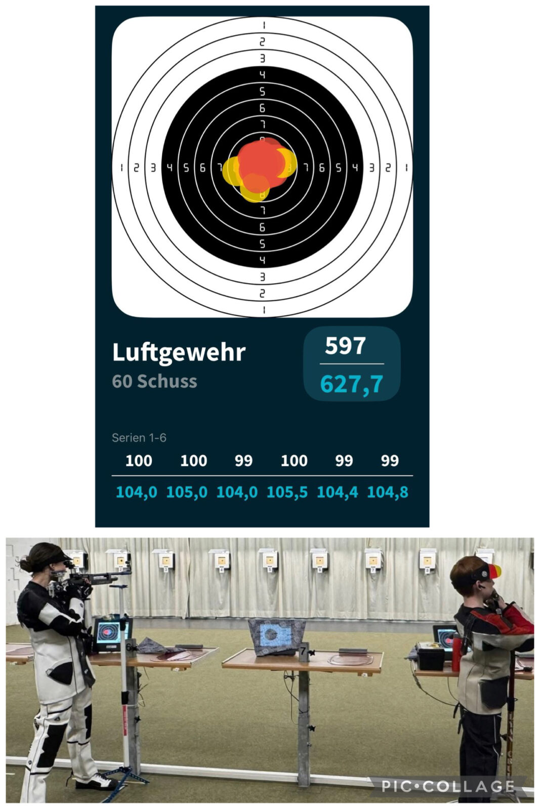 Lilly und Lyan haben eine Trainingseinheit absolviert und Lilly hat hier den absoluten Standrekord im 40 bzw. 60 Schuss Luftgewehr „freihand“ geschossen.